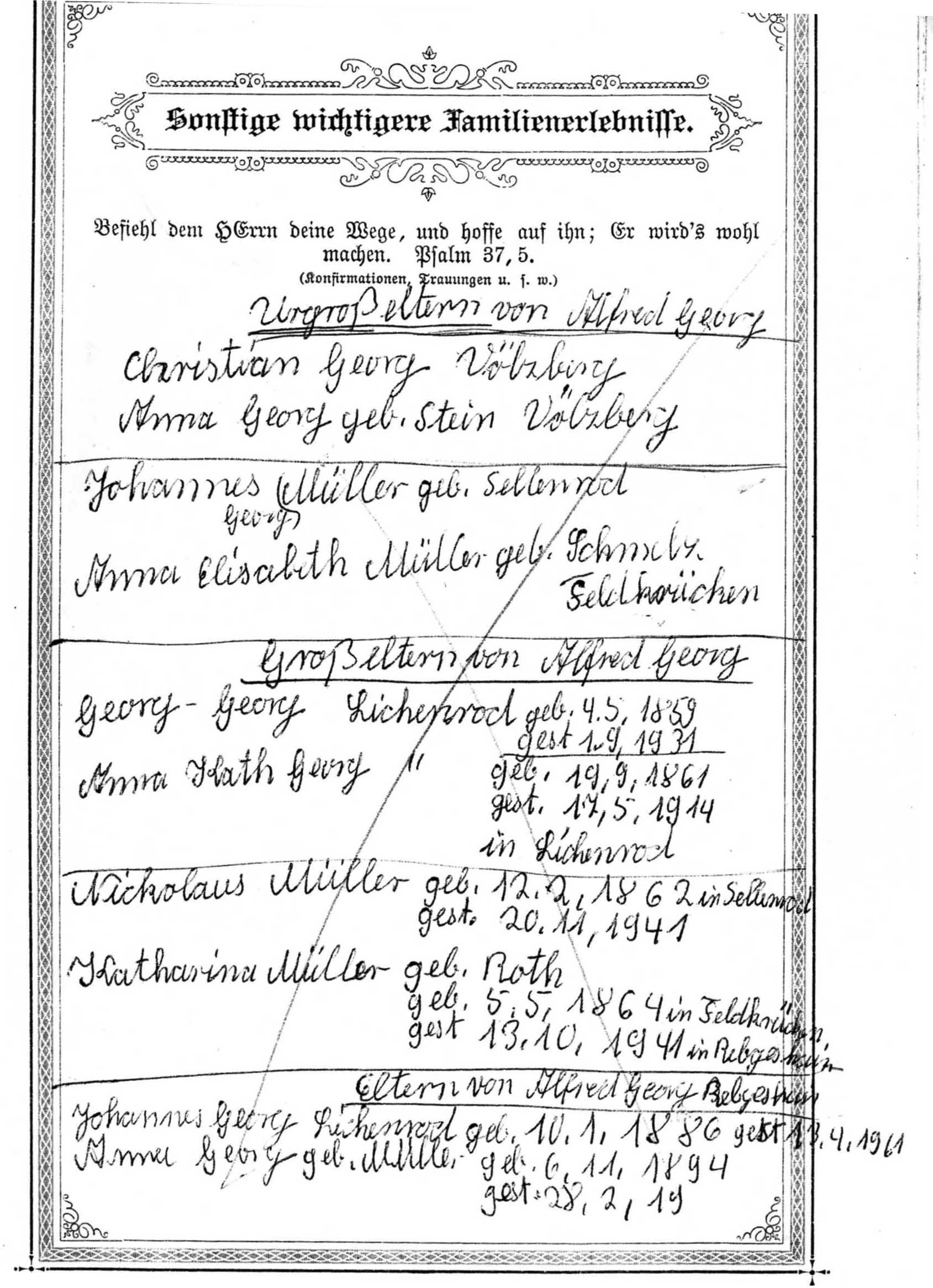 Ich kann dies gar nicht mehr so richtig nachvollziehen, was genau der Auslöser dafür war. Der Start in die Ahnenforschung liegt nun über 20 Jahre zurück. Vermutlich „Schuld“ war die Familienbibel meiner Großeltern. Darin waren die Vorfahren meines Großvaters notiert und noch ein paar weitere Personen aus der Familie, die ich noch nicht kannte. So kam eins zum anderen und das Interesse wurde geweckt. Mit meiner Schwester zusammen habe ich dann angefangen nach und nach unsere Vorfahren zu notieren. Dazu nutzten wir eine Software zum Dokumentieren – leider weiß ich nicht mehr wie diese hieß….